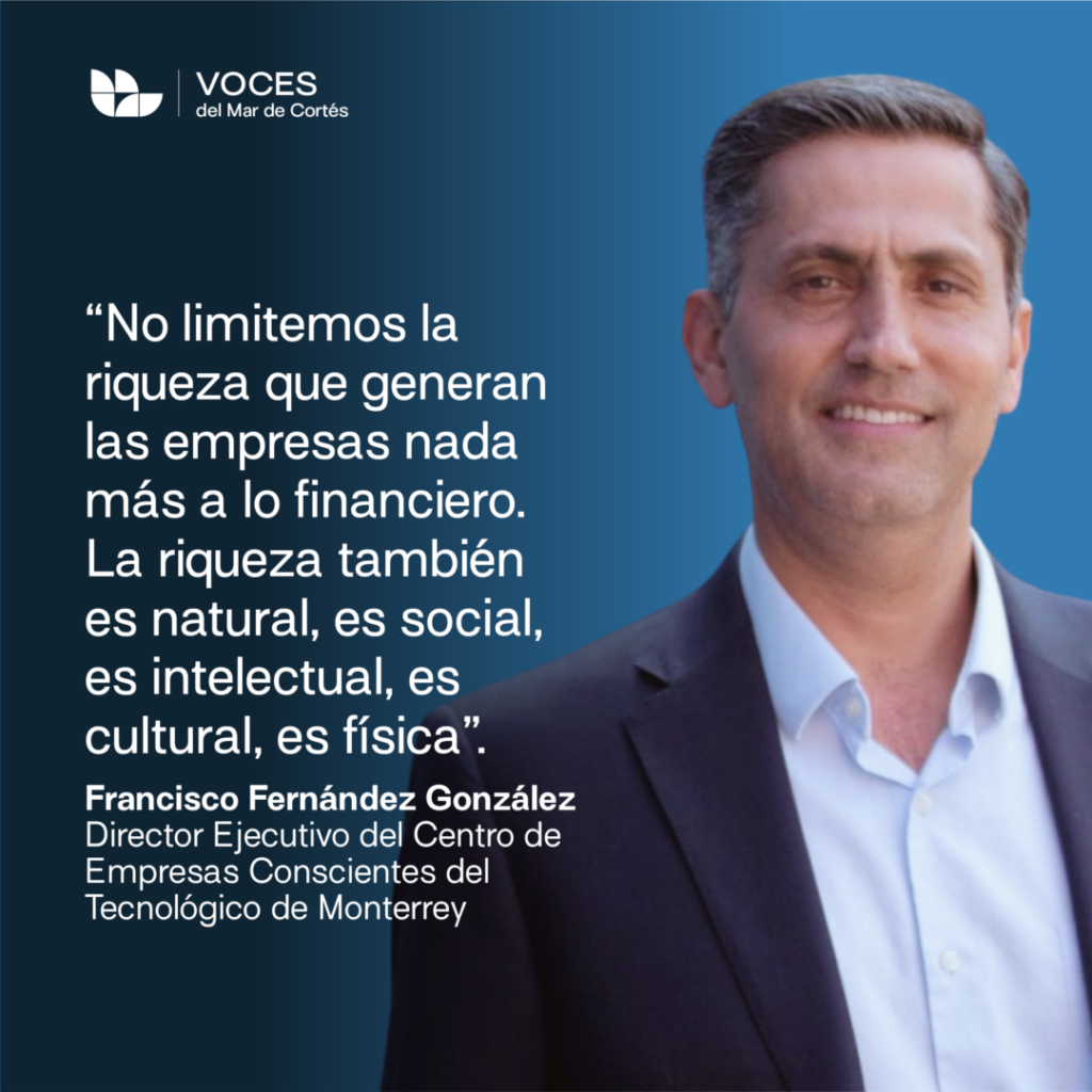 El capitalismo consciente no es una moda ni un discurso aspiracional, sino una ventaja competitiva sostenible para las empresas que buscan crecer en el largo plazo, afirmó Francisco Fernández González, Director Ejecutivo del Centro de Empresas Conscientes del Tecnológico de Monterrey, durante su participación en Voces del Mar de Cortés.